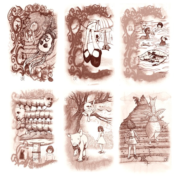 A previous post presented pictures of my Gulliver’s Travels illustrations. These were for IndePenPress and their Classics range, published in paperback and Kindle. So here are some of the next set of illustrations – for Alice’s Adventures in Wonderland.