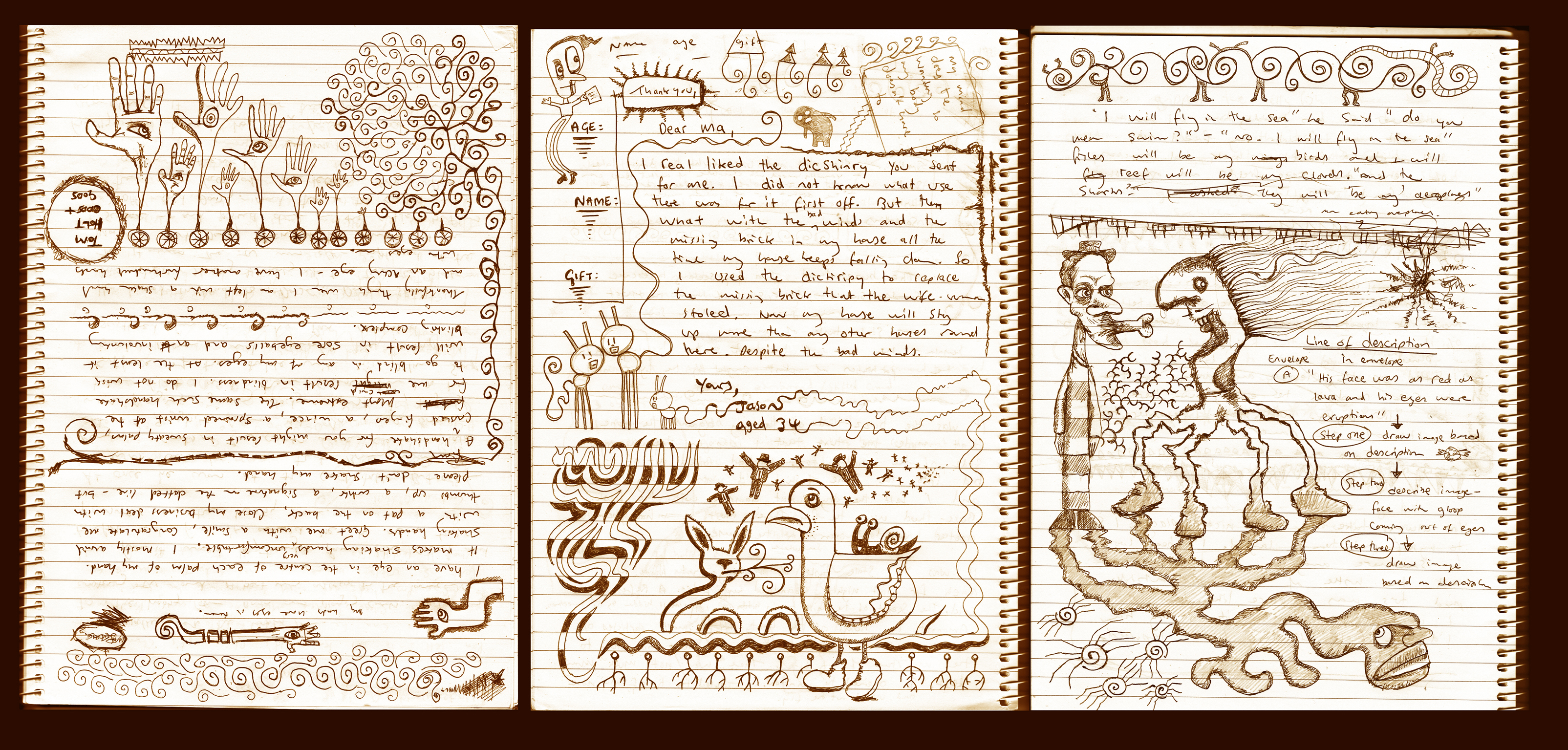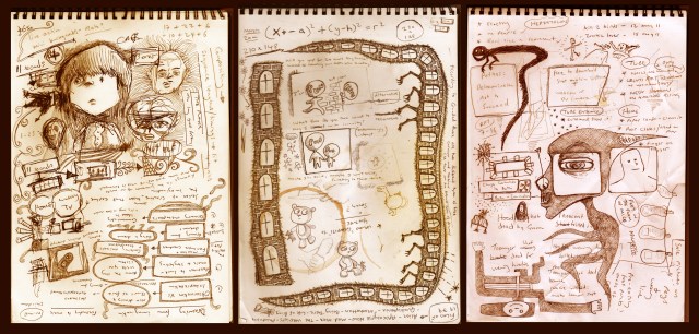 Below are some pages from the sketchpad I make notes in and the notepad I do drawings in.