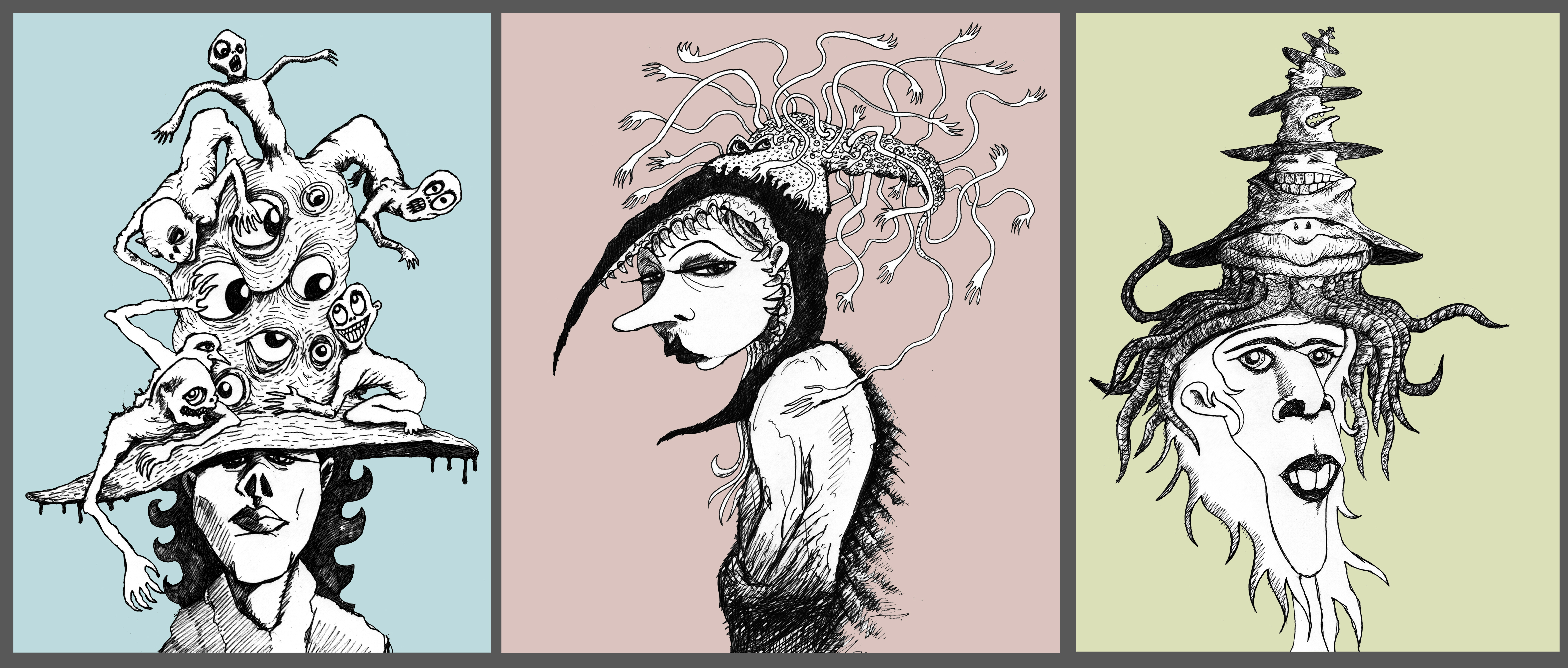 Below are some images from Gather Around the Fire, a collection of Southern African folk tales from Ravi Gupta, published by Pen Press. I created illustrations for 15 tales, each from a different country, and used the colours of the country’s flag as a palette to reinforce the cultural identity of each story. Also, while I was watching the extra features on Monster House (the image of Kathleen Turner stomping around on all fours in a motion-capture suit will stay with me) I decided to draw some monster hats.