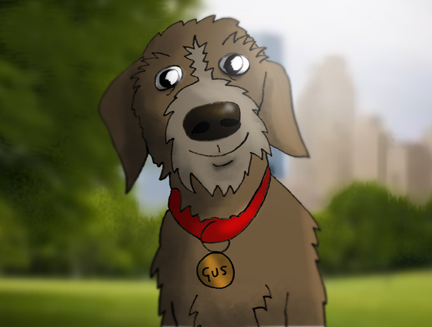 In the summer I provided some animation for a music video for the track ‘Don’t Put Me In A Box’ by Kayosoul (see the video here) and I’ve included some of the animation for it in the video below. At the moment I am creating some animation for a documentary about dogs in New York called ‘Oh My Dog!’ and an image of the main character, Gus, is below