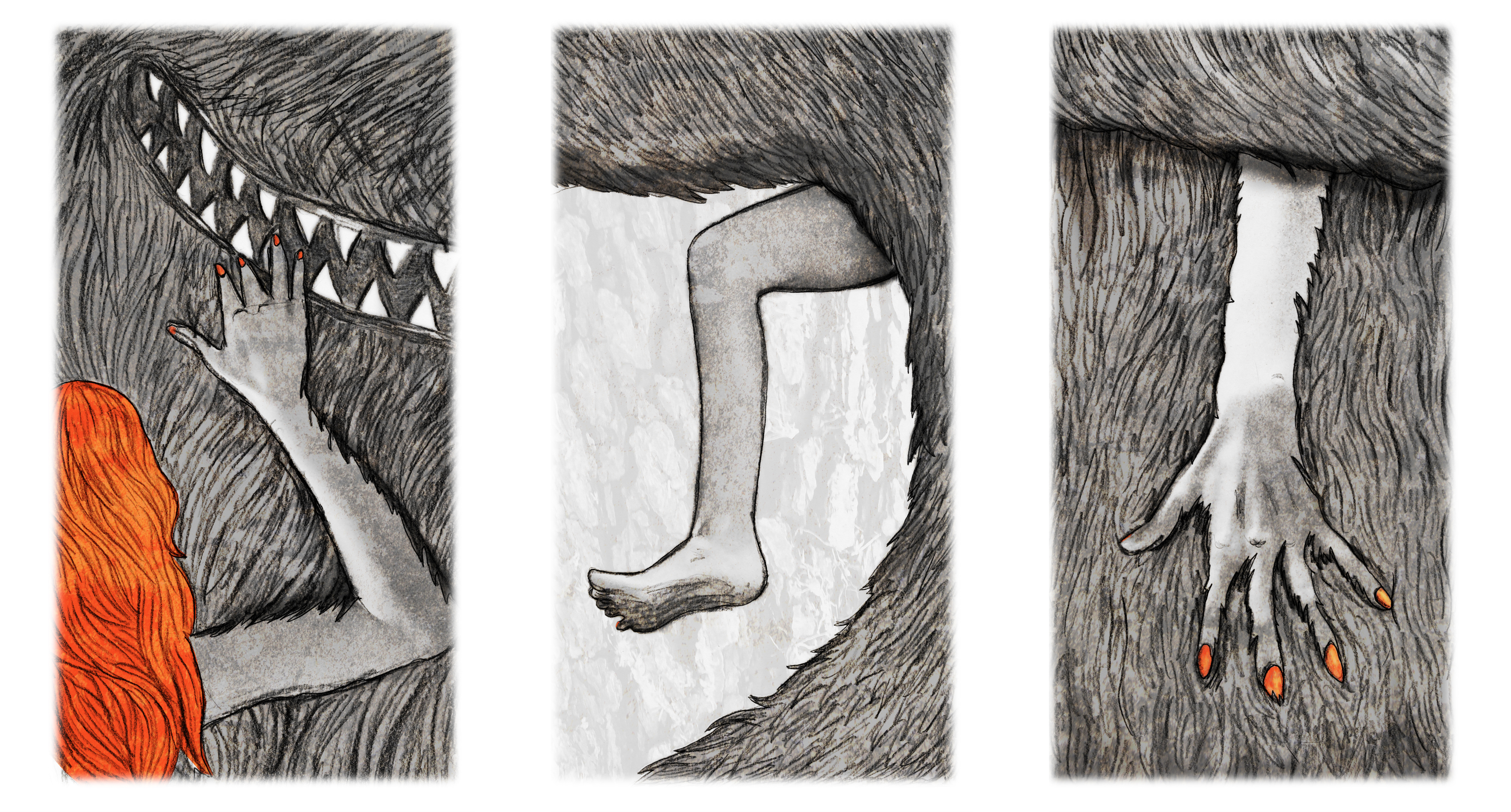 I was there to see the captivating storyteller Sally Willow perform her Goddess in the Crypt story. I’d collaborated with Sally in producing a series of small handmade books and we had some of these available over the weekend. One of these books was a retelling of the Red Riding Hood story (emphasising the rites of passage into womanhood) called ‘Red’ – I provided some wolf drawings, which I enjoyed getting my teeth into…